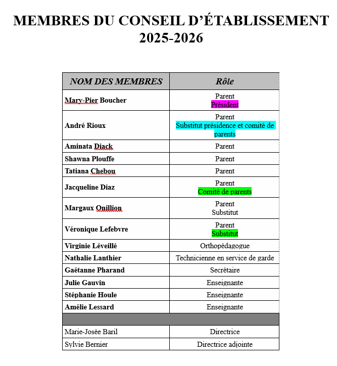 Procès-verbaux des rencontres du conseil d'établissement pour l'année scolaire 2025-2026